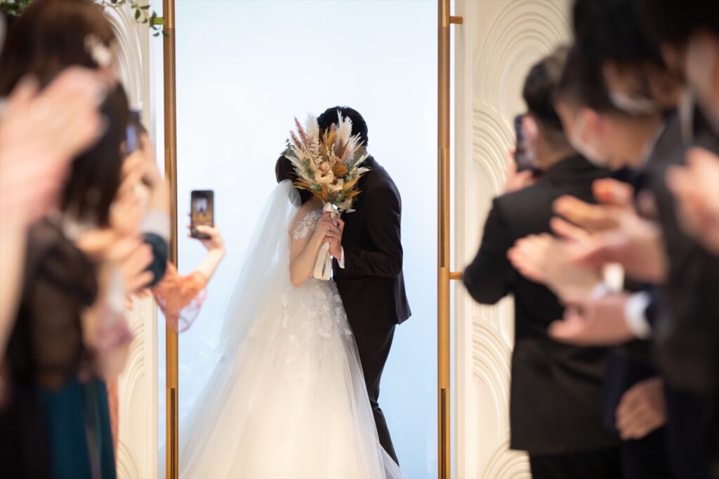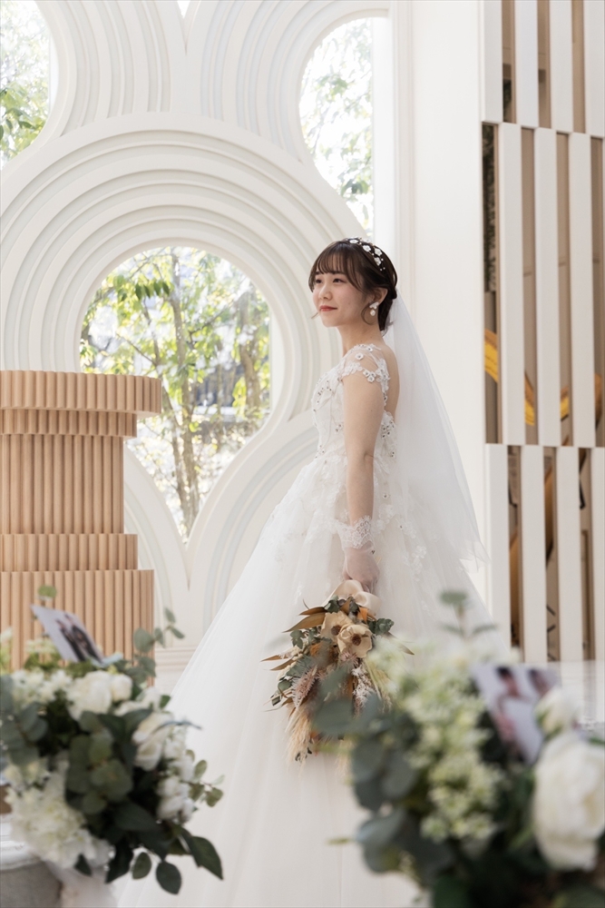 ケーキセレモニーでの釣りバイトや両親に感謝の気持ちを込めて前菜を自分で出したり、ちょっとしたシーンも自分たちらしくできたかなと思います。ゲストの表情も近い距離で見ることができ、本当に幸せな時間を過ごすことがでました。また、一生に一度の結婚式なので、当日着る衣装にはこだわりました。ブラスグループ系列のビードレッセで、自分たちに合った衣装に出会えて良かったです。