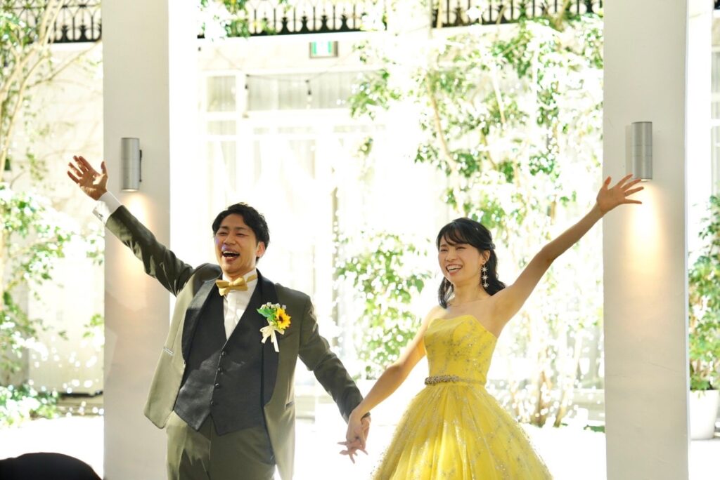 オープニングムービーとプロフィールムービーは、構成から編集まで全て自分達で作成しました。また、人前式ではゲストにも演出に参加してもらえるように、賛同の歌やサプライズリング、成婚宣言など行いました。披露宴ではゲストに余興をお願いするのではなく、逆に新郎新婦の演出で、ゲストに楽しんでもらえるように考えました!