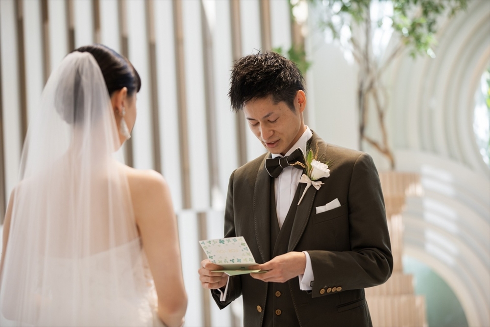 新郎かつきさんからはサプライズのお手紙。普段多くは語らないかつきさんからの言葉に涙がとまりません。