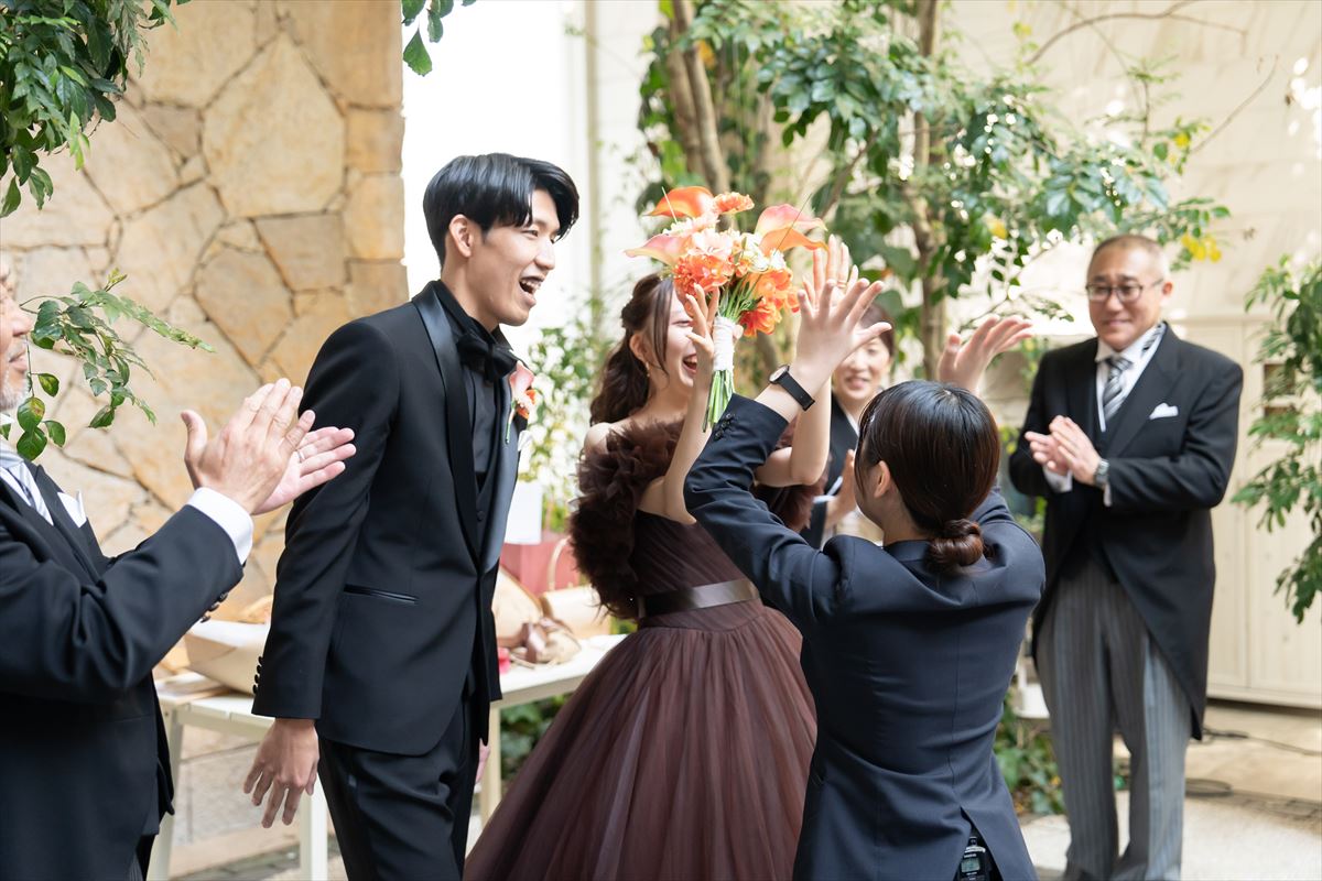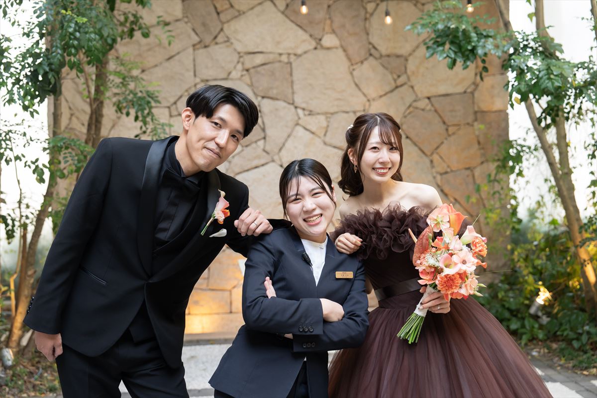 一からの結婚式準備で分からないことや大変なこともたくさんあったかと思います。お仕事の中、結婚式準備を進めて下さりありがとうございました。お打ち合わせを重ねるごとにやりたいことやイメージが膨らんでいき、よりおふたりらしい理想の一日を創ることができたと感じております。家族対面や中座など家族との時間も大切にして下さる想いに溢れたおふたりがだいすきです。これからもお互いの味方でいる、そんな存在であり続けてくださいね。末永くお幸せに!