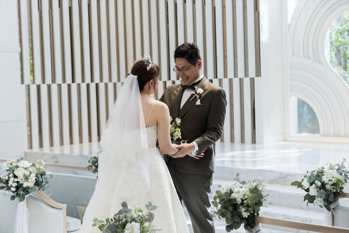 それぞれ顔を見合わせながら想いを伝え、温かい時間をお過ごしいただきました。 おふたりが選んだのは「キリスト教式」。