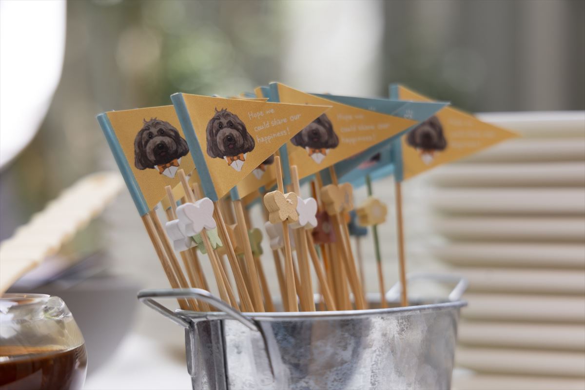 決して長い準備期間ではありませんでしたが、一つ一つ心を込めて手作りされたアイテムはどれも素敵でした。他の誰とも被らない【唯一無二なイチニチ】が実現できたと感じております。ワンちゃんとの結婚式の時間やおふたりの発案で実現したサンドウィッチビュッフェ、おじ様からによる即興の歌のプレゼント…どれも心温まるお時間でした。おふたりが周りの皆さまからどれだけ愛されているのかを身体中で感じることができるイチニチでした。そんな素敵なイチニチをおふたりと創り上げることができたこと、心より感謝申し上げます。またいつでもラピスコライユへ帰ってきてくださいね!末永くお幸せに。