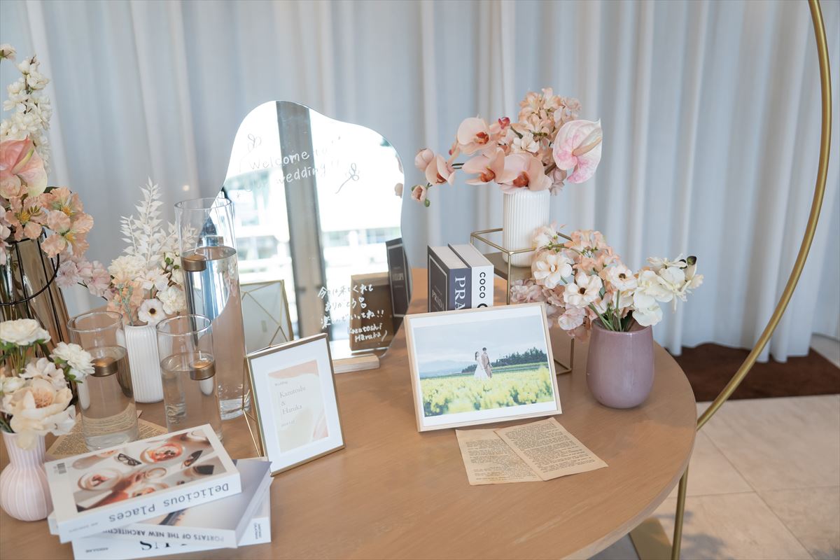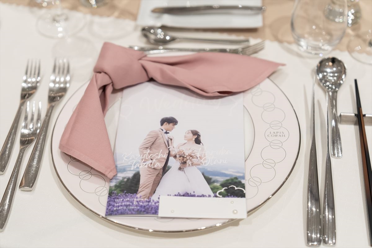 おふたりそれぞれの実家のわんちゃんが来てくれることと、ご夫婦での人生のスタートの日という意味を込めて「ワン」というワードをふたつ掛け合わせた、ワンダフルとワンダフォーをテーマにしました。