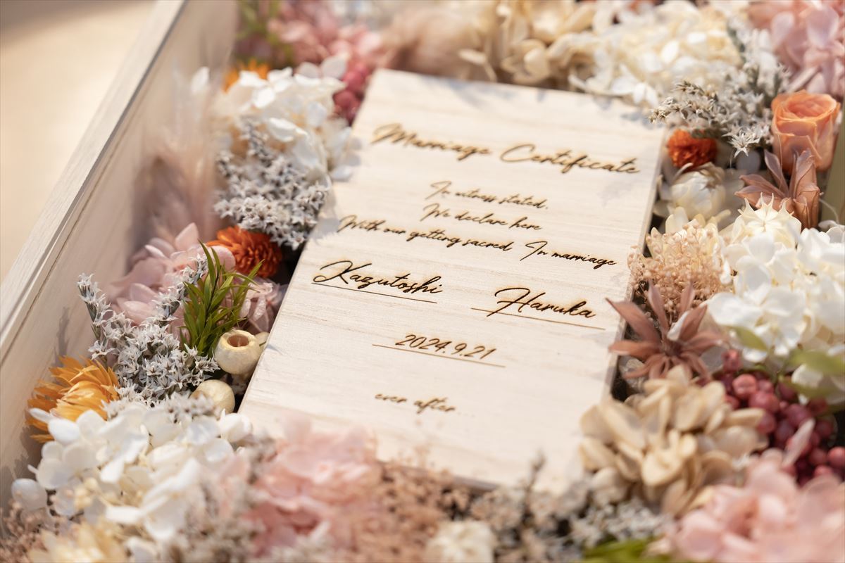 挙式の中でおふたりがボックスの中から1枚を選び取り、当たった方から誓いの言葉を投げかけていただきます。