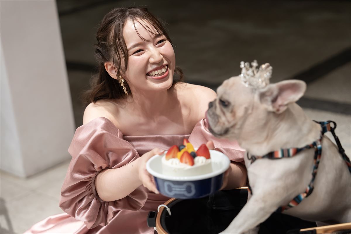 おふたりのご友人へサンクスバイトを行い、その後はなんとワンちゃん用のケーキも登場しました!