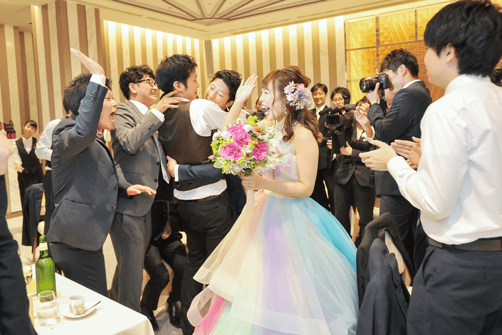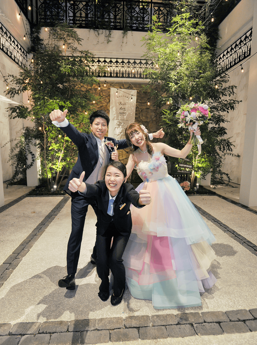 ラピスコライユ全員の顔と名前を覚えてくれたり、準備期間を通して、他のスタッフとも仲良くしていただけたことも嬉しく思っております。お色直しに参加させていただいたメンバーも、おふたりの結婚式を楽しみにしていました。