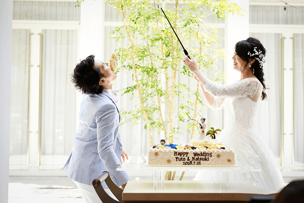 また当日の楽しみにしていた 釣りウェディングケーキも可愛くて、 鯛焼きファーストバイトも大成功!