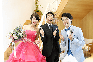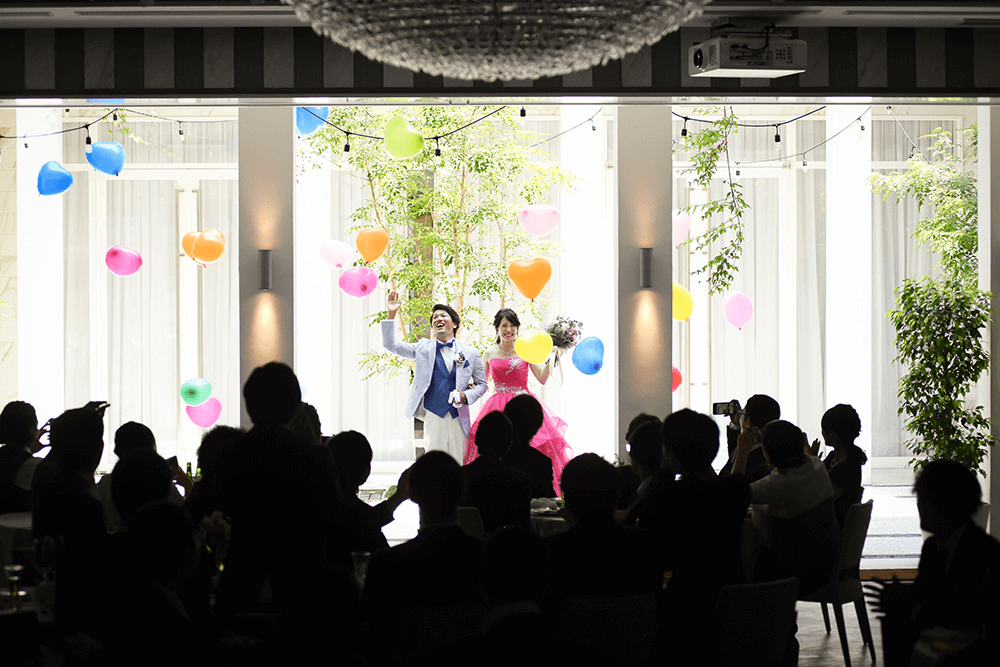 「お二人は○○が好きだから、お色直し入場は愛のバクダンを降らせませんか?」と、