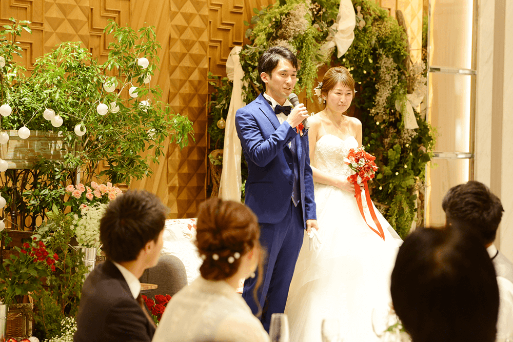 約半年間の打ち合わせはあっという間で、打ち合わせを重ねるたびにおふたりの結婚式が形になっていくことがうれしく、それと同時におふたりと会える回数が少なくなっていくことへの寂しさも感じておりました。 たくさんのご友人の囲まれ、同窓会のようなアットホームな雰囲気の結婚式。