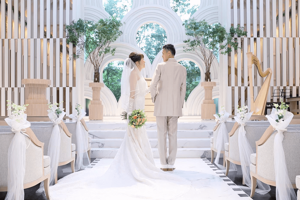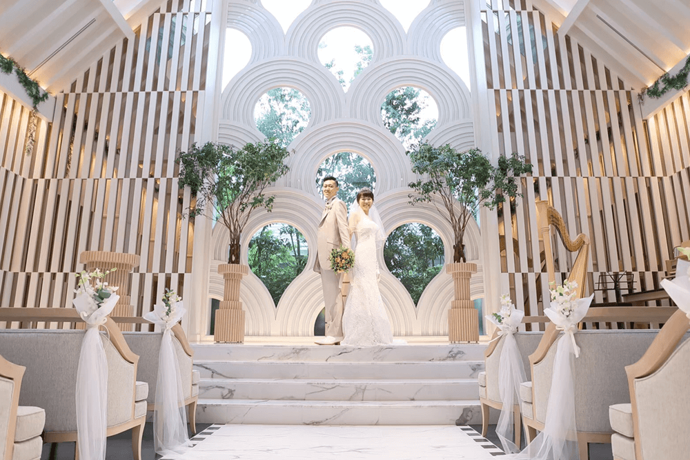 式場は新しく白を基調とした自然溢れたものでとても好印象でした。白を基調としたチャペルは日が暮れてからの見学だったのにもかかわらず光が差し込んでいるかのような神秘的な空間がそこにはあり、思わず2人して涙ぐんでしまいました。