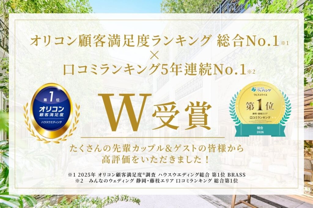 ラピスコライユを運営するブラスグループが、オリコンの 2025年「ハウスウエディング」顧客満足度調査で、総合および「ウエディングプランナー」部門の第1位を獲得しました。