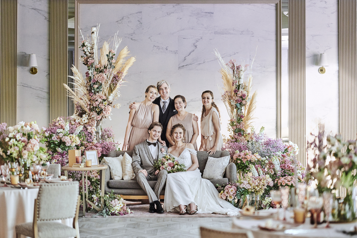 ホワイト基調の空間へと生まれ変わり、おふたりの席周りも明るく華やかな空間に。